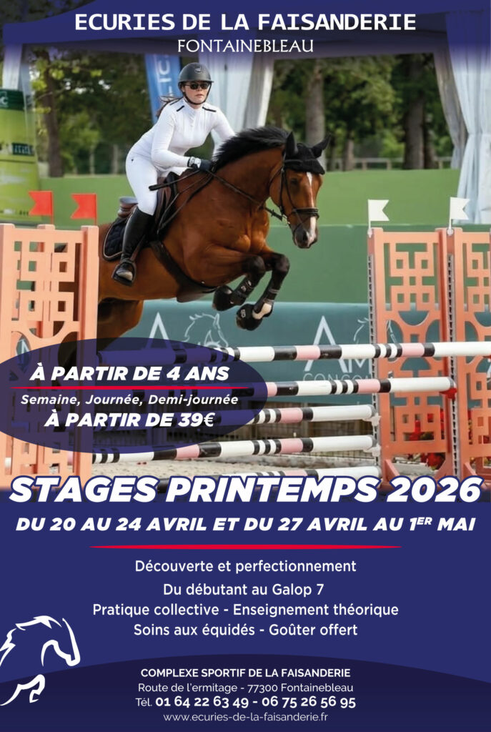 Stages d’équitation vacances de Printemps 2026 – Aux écuries de la faisanderie à Fontainebleau 77 Seine & Marne.